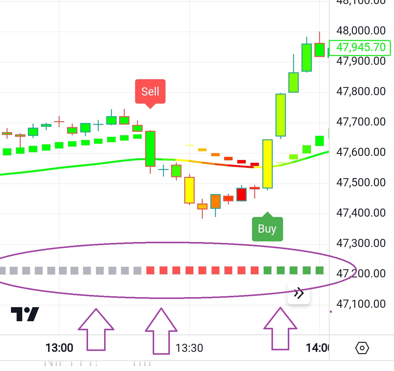 You Can See This Bottom Bar This Will Help Us To Find Sideways & Trendy Market Green Means Buy Red Means Sell Silver Means Sideways Don't Trade That Time